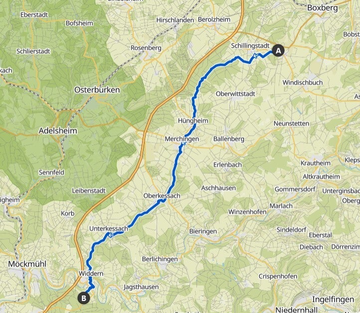Zufällig habe ich in Widdern eine Bekannte auf ihrem Rennrad getroffen, die auch die richtige Abzweigung gesucht hat (Gruß an Mareike). Gemeinsam haben wir sie gefunden und ich musste nur noch über die Jagst...
