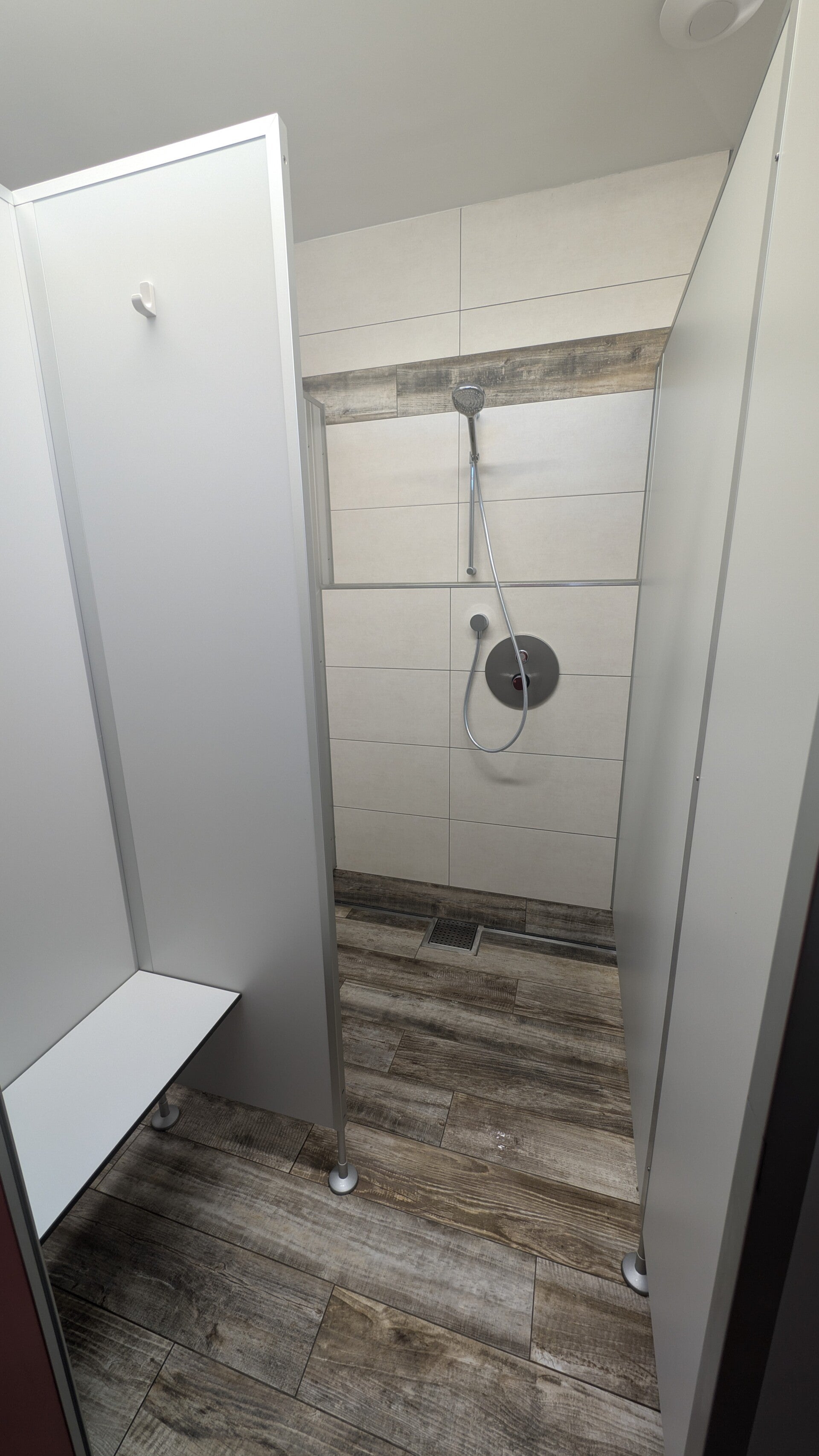 ...ein ebener Rasenplatz im Schatten, bei dem die Heringe gut reingehen, obwohl der Campingplatz voll ist.